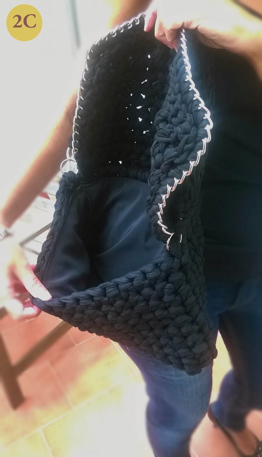 Mi hermana lo quería más grande que los bolsos que había hecho hasta ahora, tamaño folio me dijo, no muy largo y con el asa tejida y ancha.