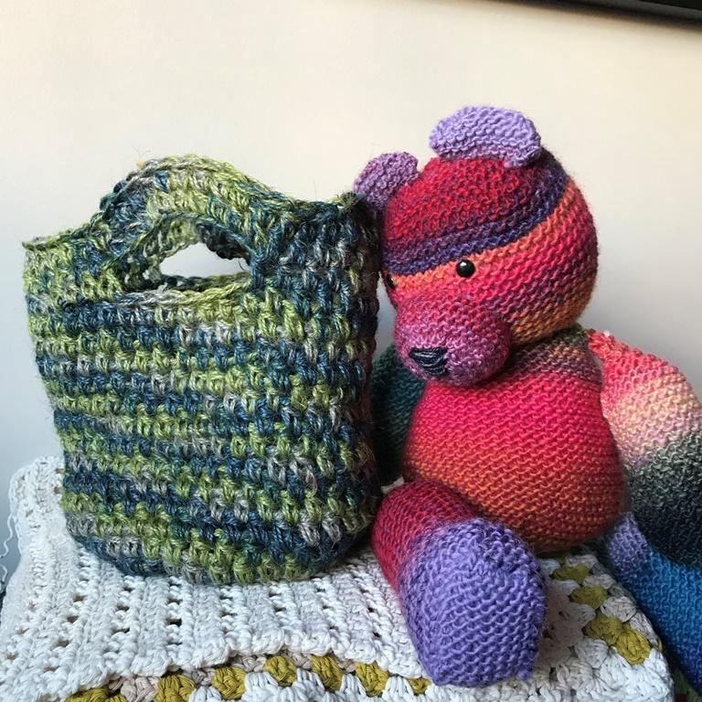 Por supuesto que también se puede tejer con hilo de algodón tipo piolín, , con varios hilos finos de esos que nos van quedando en el cajón del taller, o directamente con lana.