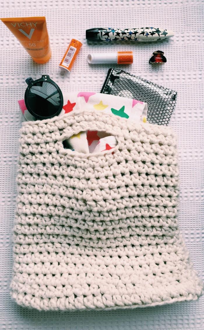 Hace un tiempo tejimos un pequeño bolso al crochet para la playa. Aunque también podía servir para la piscina, para regalar o para usar como bolsa de regalo.
