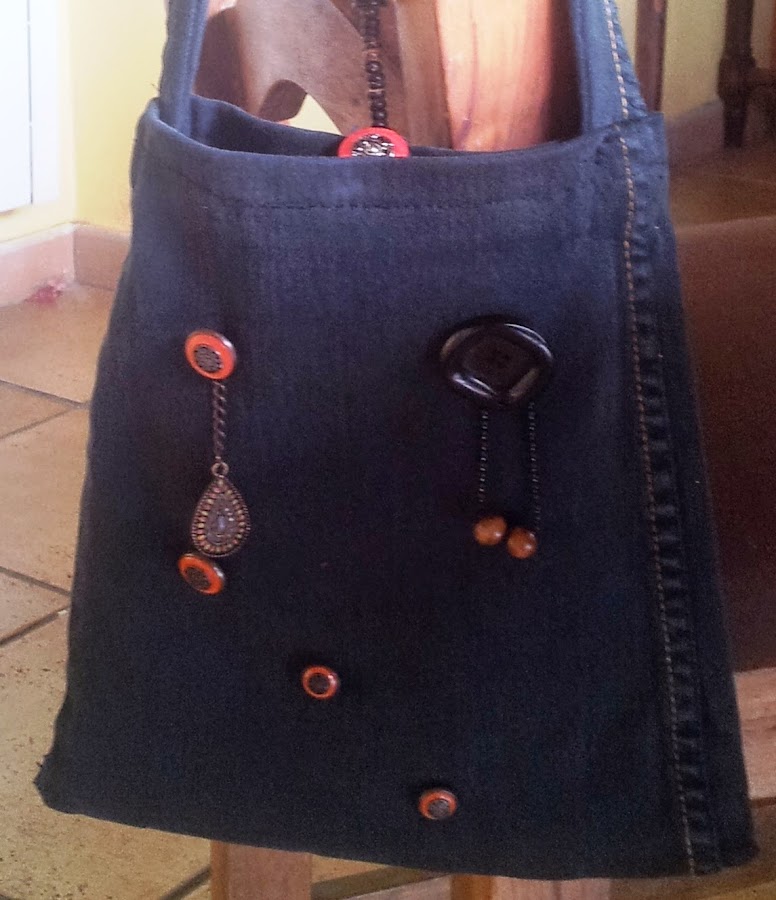 Después de un parón.... vuelvo con más fuerza. Os traigo un bolso que he realizado con unos viejos tejanos que tenía por casa.