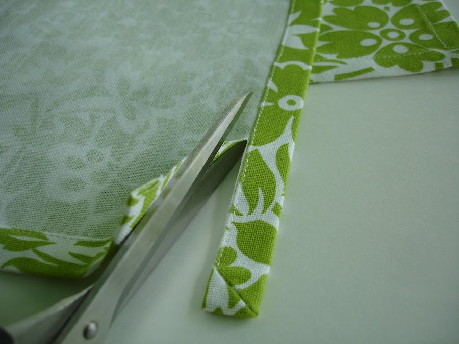 Cosa a través de la línea marcada y cortar el triángulo superior.Haga esto en la esquina inferior otra también. Y las esquinas de la segunda paño de cocina.