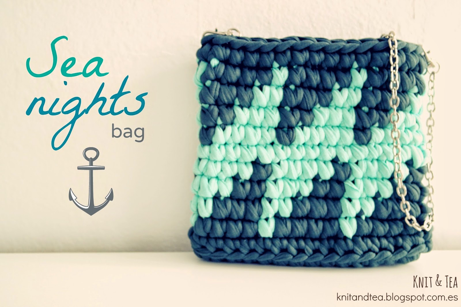 Hace tiempo que hice este bolso de mano ideal para las noches en las que sales y sólo te apetece llevar el monedero, un perfume, la barra de labios y el móvil. Yo tengo algunas noches de esas... así que cuando descubrí la técnica del tapestry o jacquard me puse a ganchillear como loca... todo eran dibujos y más dibujos! Acordaros de la funda para el ebook que os mostré hace poco.... Pero en esta ocasión le tocó el turno al bolso. Sea Nights porque los colores que utilicé me recuerdan al mar y sobretodo porque es uno de esos bolsos pequeñitos que apetecen llevar por un paseo nocturno y veraniego. Con lo imprescindible.