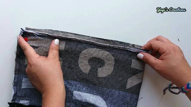 Cosemos por arriba en ambos lados dejando unos 6 cm en cada extremo sin coser para poder darle la vuelta, así: