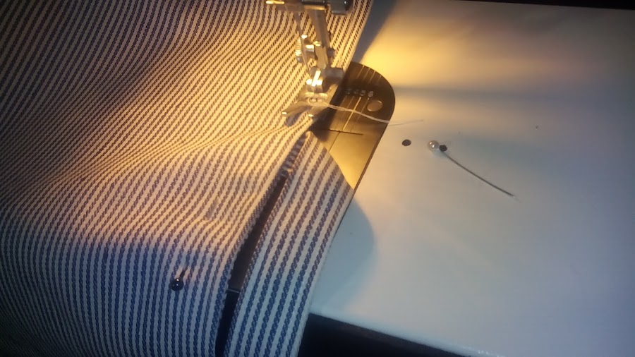 Un broche magnético, alfileres, máquina de coser, tijeras etc.