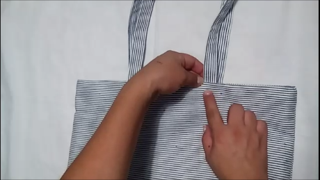 Procura pasar la costura por encina de la que ya has hecho a las asas, para que no se vean.
