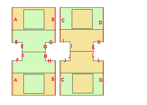 Primero hay que unir A con A, B con B, C con C y D con D. de esta forma les queda un rectángulo con otro más pequeño pegado abajo.