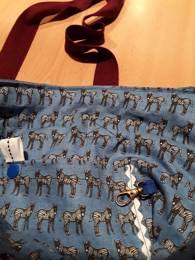 Como veis por las fotos.Dentro puse un bolsillo con un snap y un mosquetón para colgar la mascarilla ,ya que necesitamos andar con la mascarilla ,por lo menos guardarla en el bolso en lugar de dejarla por cualquier sitio.En la parte de fuera puse otro bolsillo que cierra con otro snap.