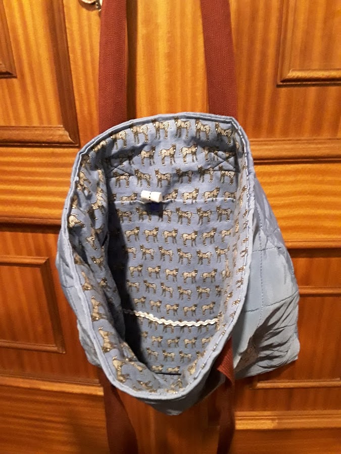 En esta entrada os muestro un bolso tipo "tótem ".Es una tela acolchada y de forro le puse una con caballitos que tenía guardada.