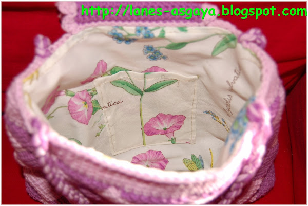 Hacemos las asas. En este caso hice el cordón de Doña Esperanza Rosas. Y le tenemos que hacer un forro (que, en mi caso, es lo que más me cuesta). Recordé ponerle primero un bolsito.