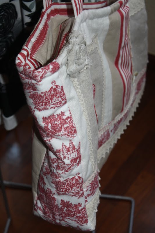 Me ha dado tiempo a acolchar.......y a seguir haciendo todas esas cosas que me gustan. Una de ellas, este bolso, que vi en una revista y me encanto. Se me metió en la cabeza que tenía que tener uno.
