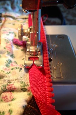 Compré una cremallera y rebuscando por ahi y por allá encontré una cinta que pudiera servir de asa. Además combinaban los colores.