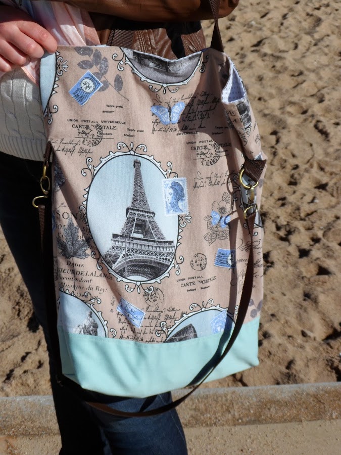 Mi bolso Viator es el tamaño grande , la tela que he utilizado aparecen diferentes monumentos muy famosos.