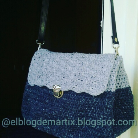 Última entrada del año, lo despedimos con este nuevo diseño de bolso, que os enseño, esta tejido con ovillos "vintage lien" negro y gris (lo compre en: www.kitsybobinas.com).