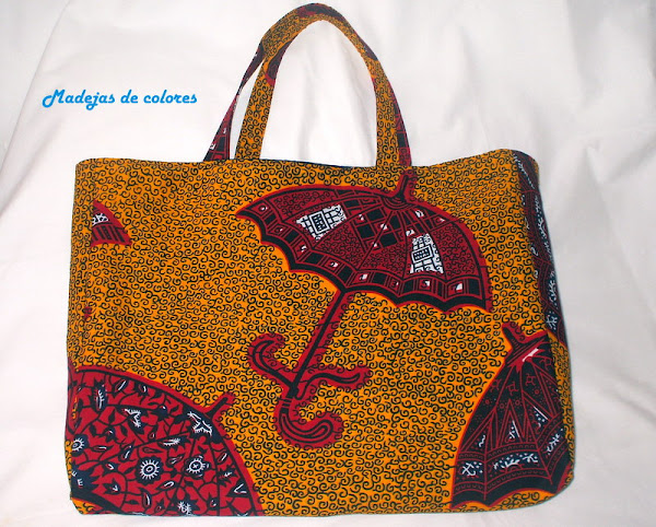 Como siempre con unas telas de lo más colorida, como este gran bolso, donde cabe de todo y con un diseño de paraguas.