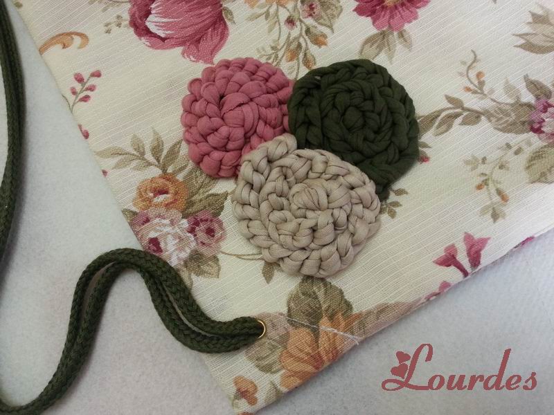 lleva unos detalles realizados en trapillo en las tonalidades de la tela.