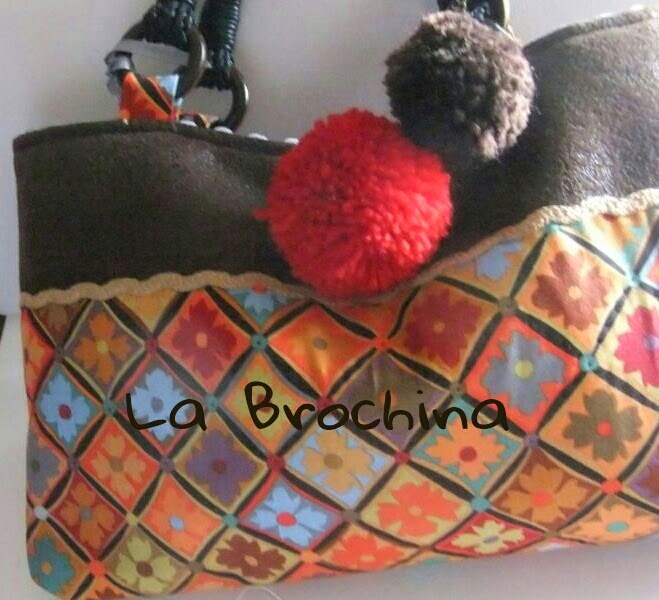 Bolsa con asas trenzadas en formato XL, polipiel marrón chocolate y algodón con unos preciosos colores