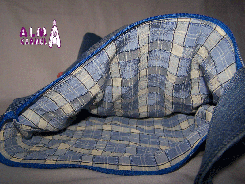 Con forro interior en tonos azules, a juego con la parte exterior.