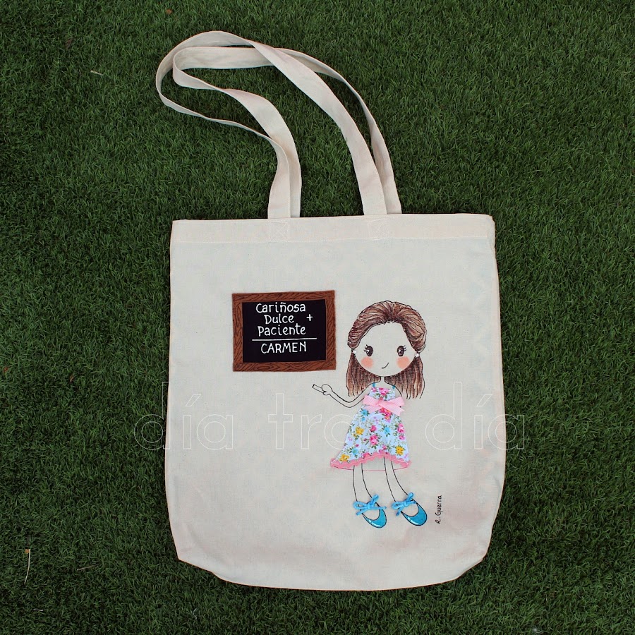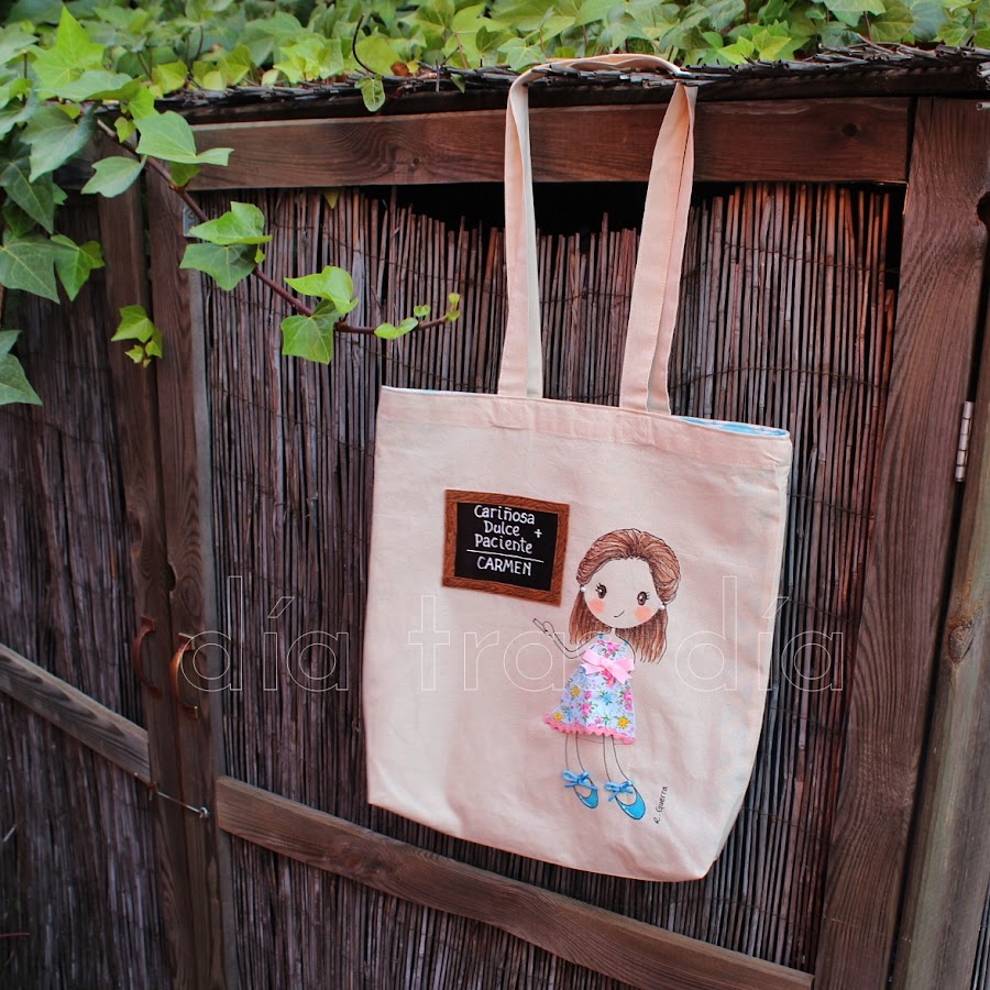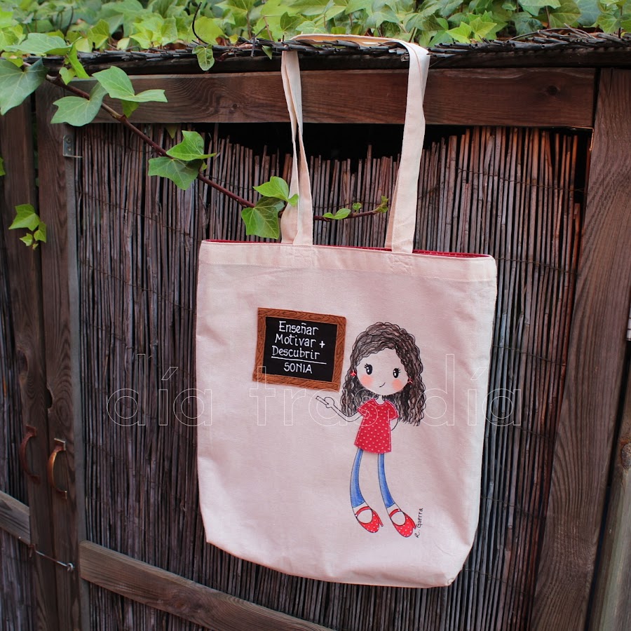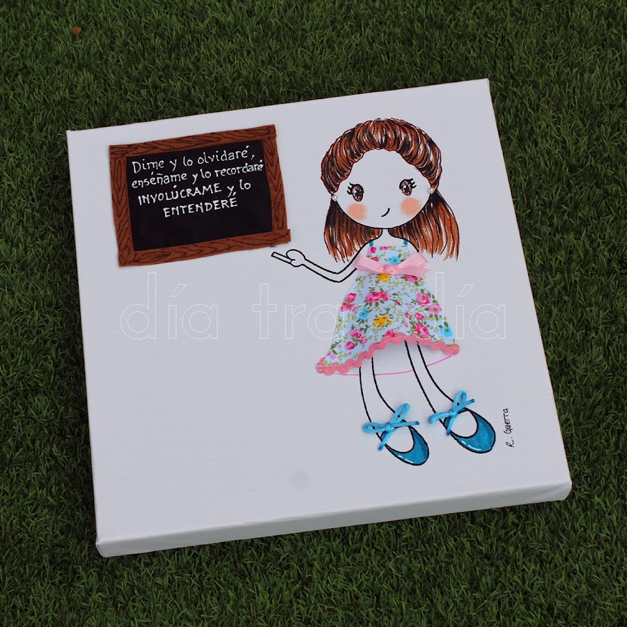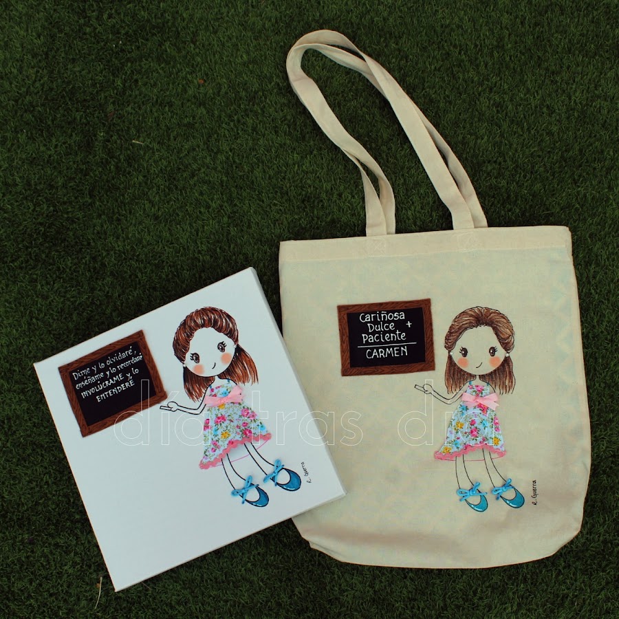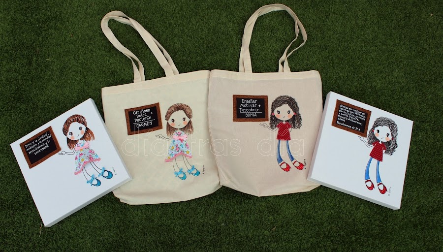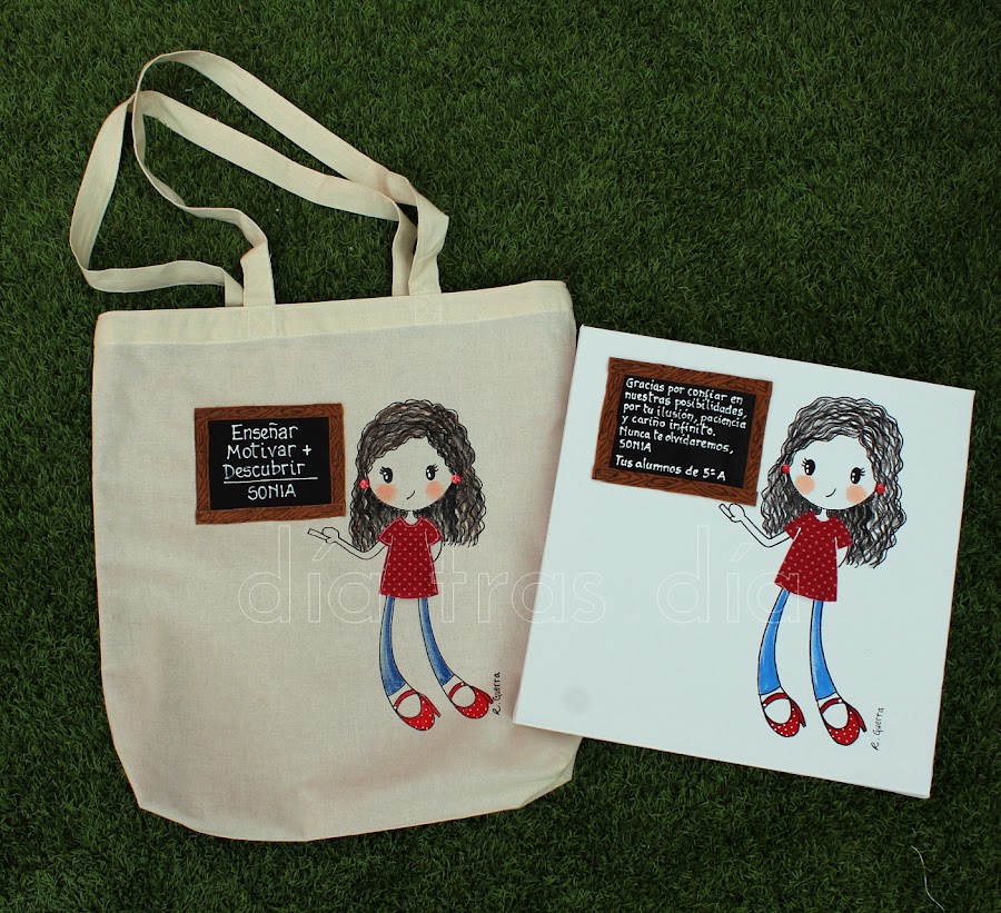 Esa vez Concha quiso que hiciera un bolsoy un lienzo decorados con maestras personalizadas para Sonia y Carmen.