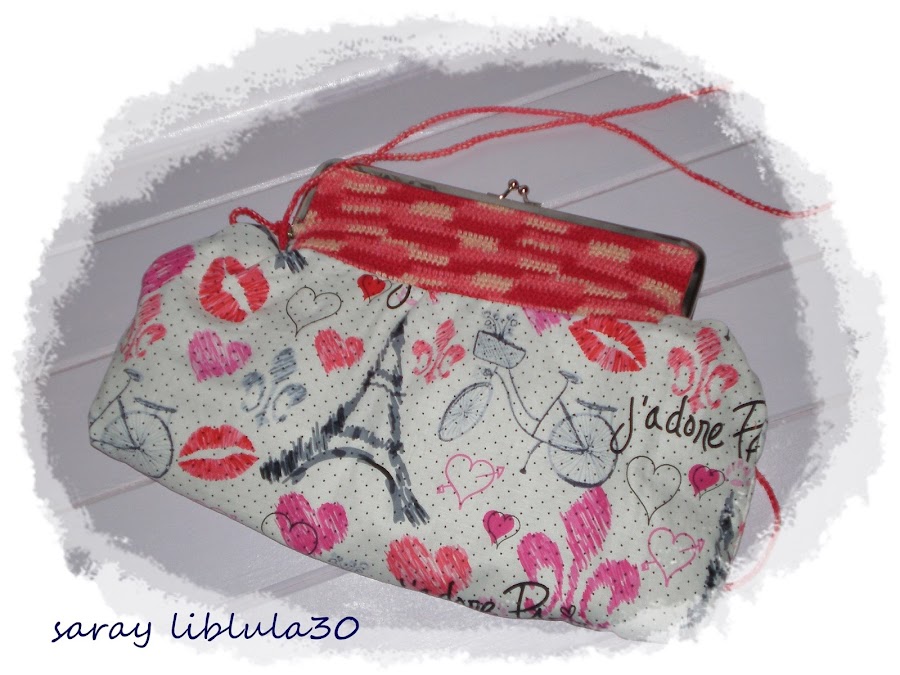 Este otro lo hice a mi invención la parte de arriba es a ganchillo luego lo uní y le puse el forro luego lo pegue a la boquilla y coloque el cordón que también lo hice yo