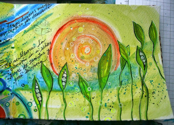 Hice un ejercicio que consiste en dejar ir solos la mano, el color y el pincel sólo dejando invadir la mente con el tema... suena raro? no tanto si sabemos cómo va la cosa. Y ya ven el resultado, me gusta! porque es una mezcla entre sensaciones y figurativos.