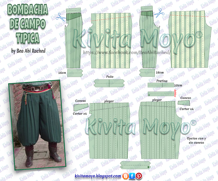 Nota: si se desea incorporar blosillo lateral. Tambien bolsillo tipo ojal en la parte trasera, sobre la costura del tableado en el primer caso o bien entre el canesu y el tableado del pantalon para el segundo caso. Si la prenda es de danza podria obviarse los bolsillos.