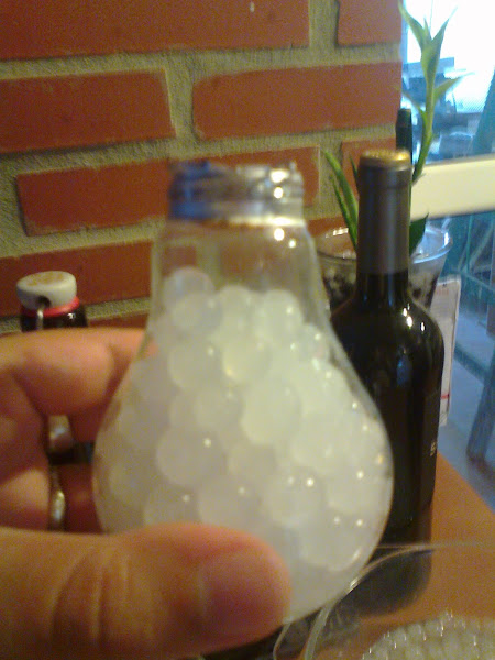 Las bombillas blancas están recubiertas de caolín, que se puede quitar introduciendo un poco de sal y agitando.Con el alambre construimos un soporte para asujetarla a la pared.