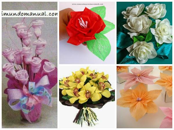 5 tutoriales para hacer flores con papel crepe :HAZ CLIC AQUÍ