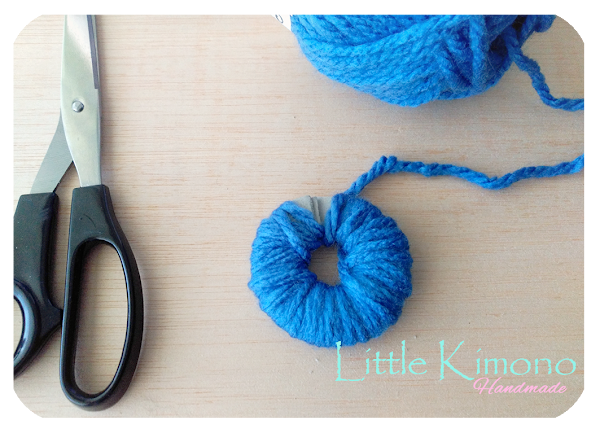 2. Cuando tengamos la cantidad necesaria que queremos para nuestro pompon podemos cortar.