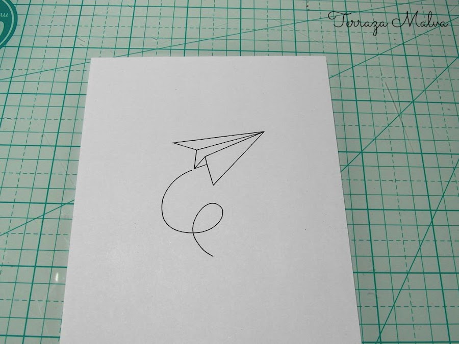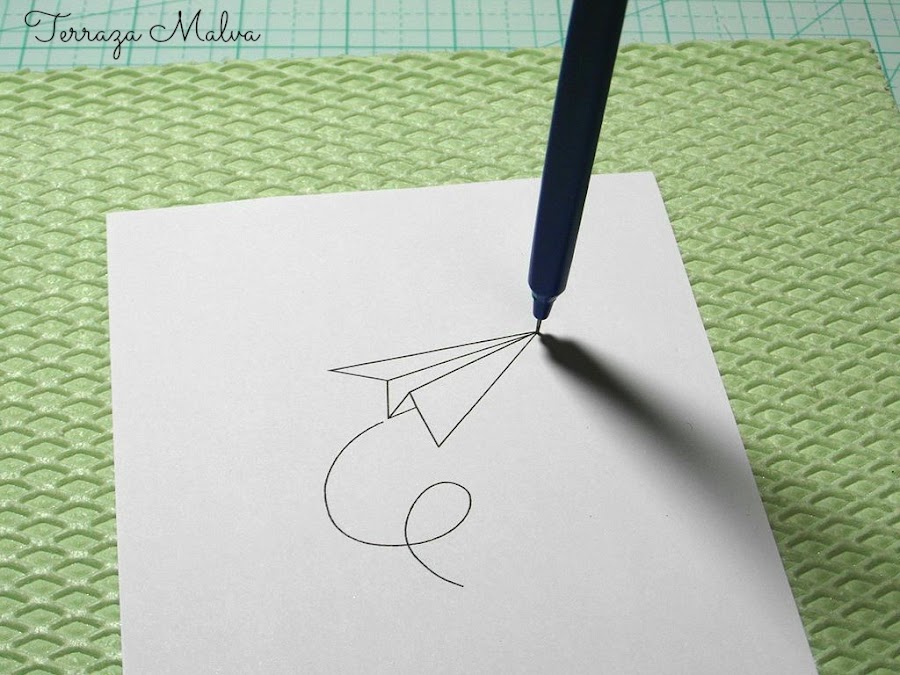 Para los bordados de contorno es preferible elegir dibujos simples o siluetas con pocas líneas. Yo he elegido el dibujo de un avión de papel y su trayectoria. Si queréis utilizar este gráfico para realizar vuestro bordado o para cualquier otra cosa podéis descargarlo en formato pdf desde este enlace.