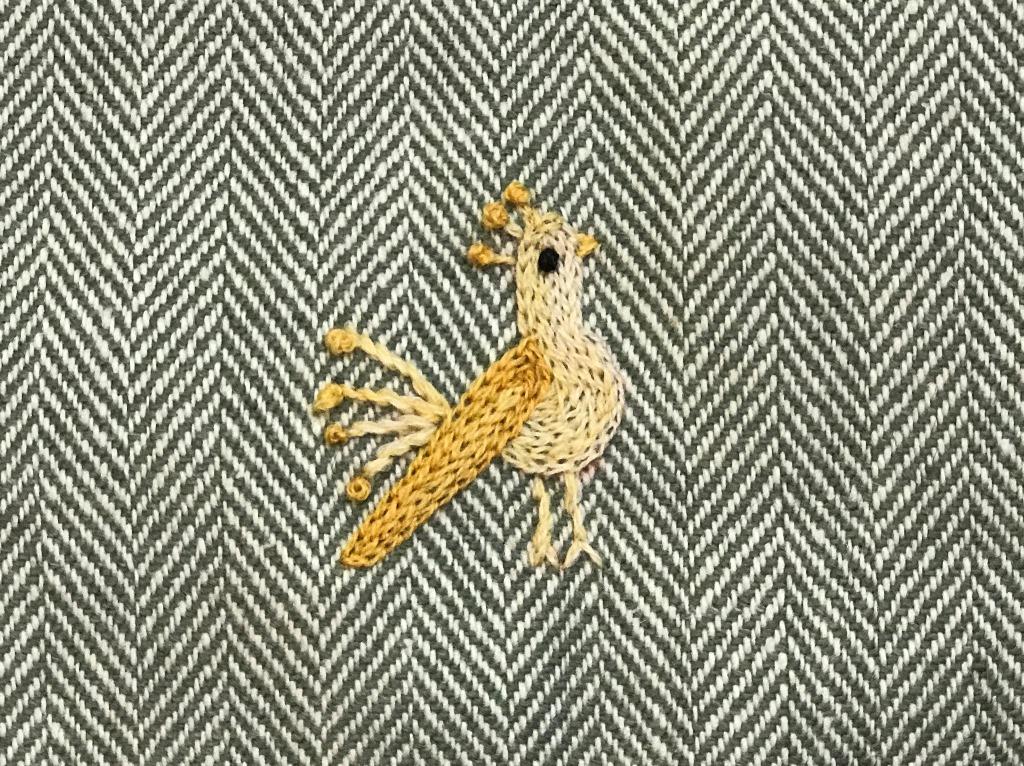 Cuando se trata de adolescentes es mejor preguntar primero los colores. Así que nos comunicamos por Skype y recibí la consigna: tela gris, bordados amarillos.