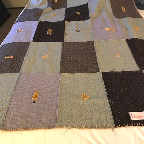 Hace un tiempo fui a Géneros de Sur, y compré unos cuantos retazos de paños de lana en varios colores. Con los azules hice una colcha que fue a parar a los pies de la cama de mi hijo varón. Ahora tocó hacer una colcha para Felicitas, que se fue a estudiar a la Universidad Católica de Washington, en Estados Unidos. Y allí sí que hace frío.