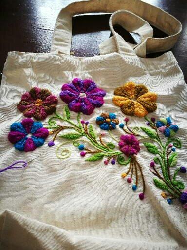 Los bordados siempre me llamaron la atención desde muy pequeña, pues recuerdo haber visto a mis abuelas y tías hacerlo. En algún momento las recuerdo sentadas y muy concentradas bordando con hilos y cintas. También se puede usar lana para bordar.