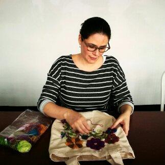 Bordar es como pintar pero con hebras, escogiendo la mezcla de color para darle movimiento y profundidad a cada detalle.