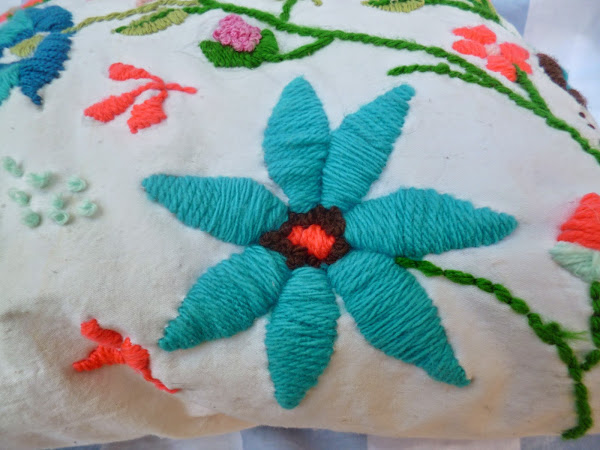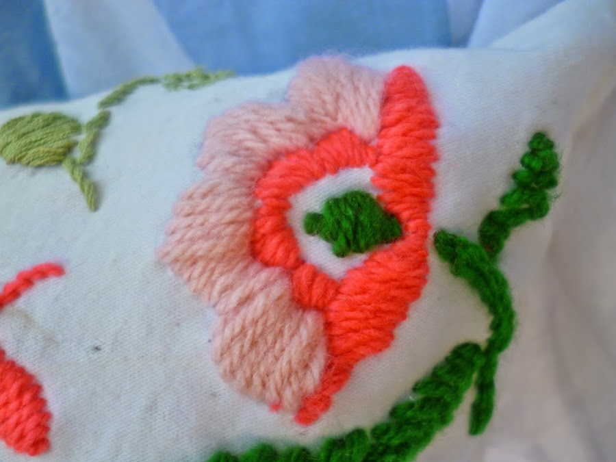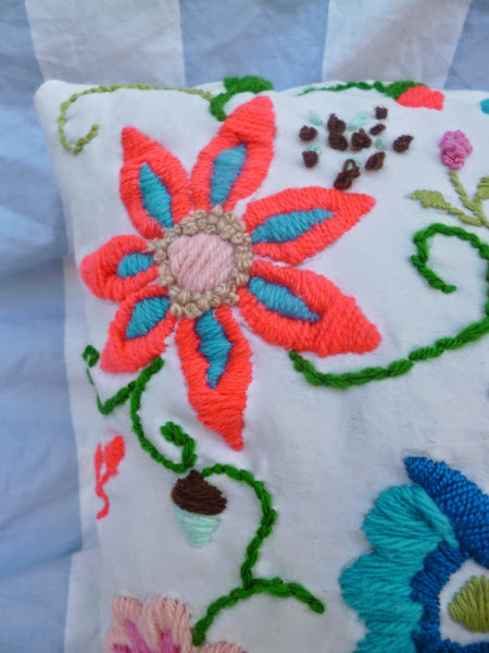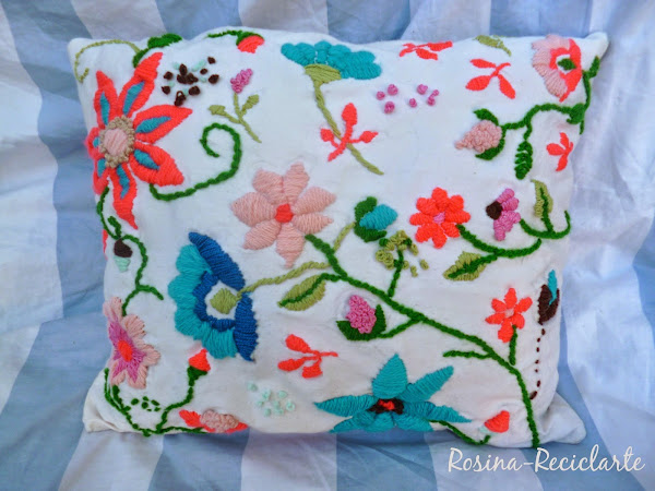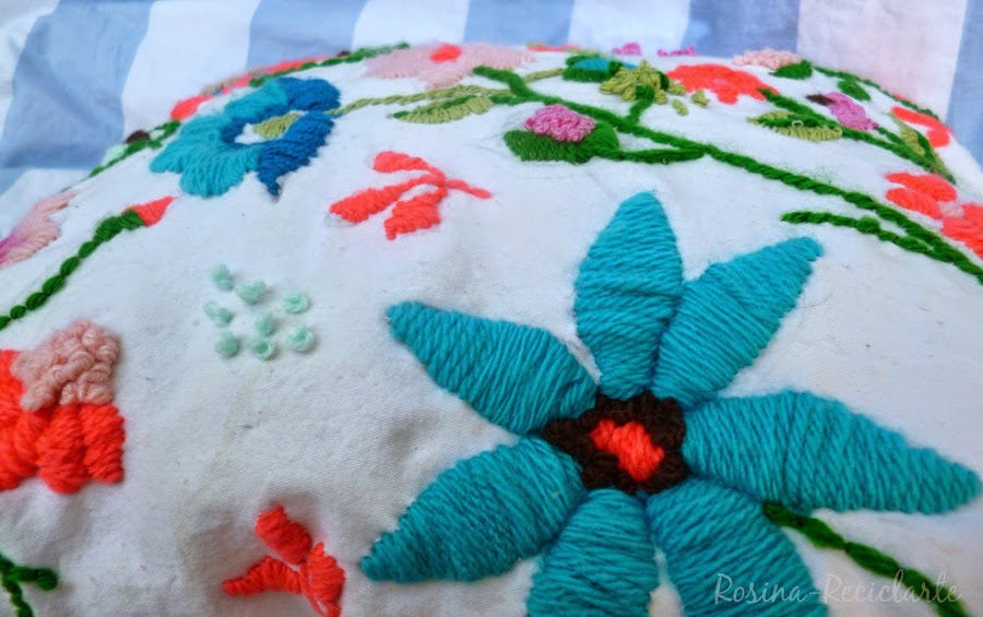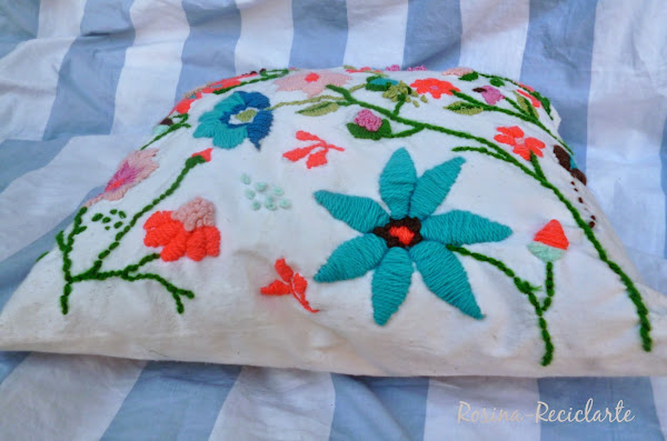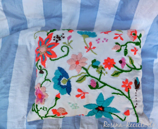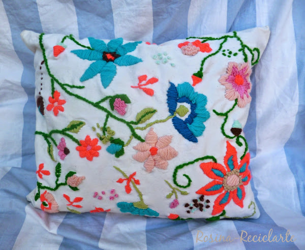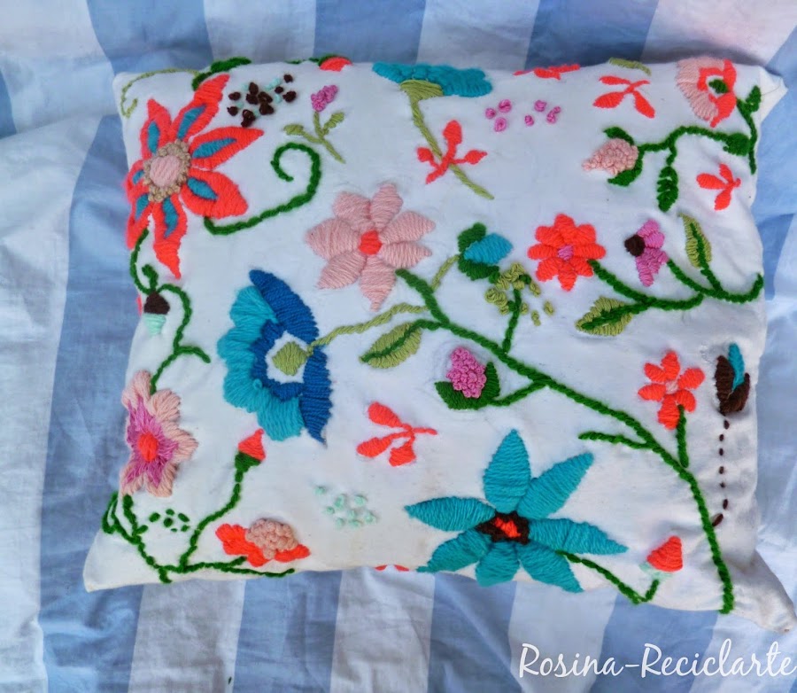 Y como te decía que era una funda de almohada después de bordarla, la hice funda de almohadón solo cortándole la cenefa .