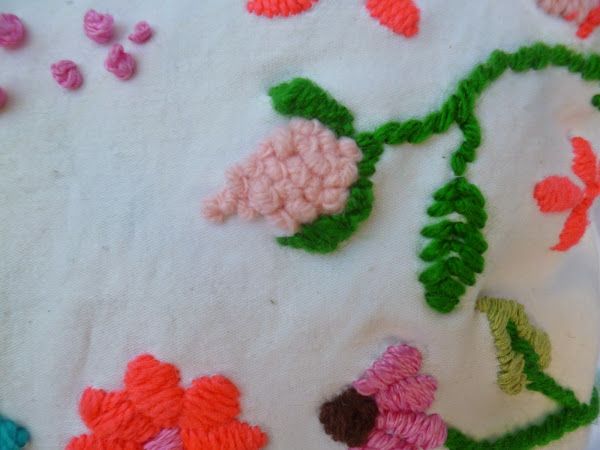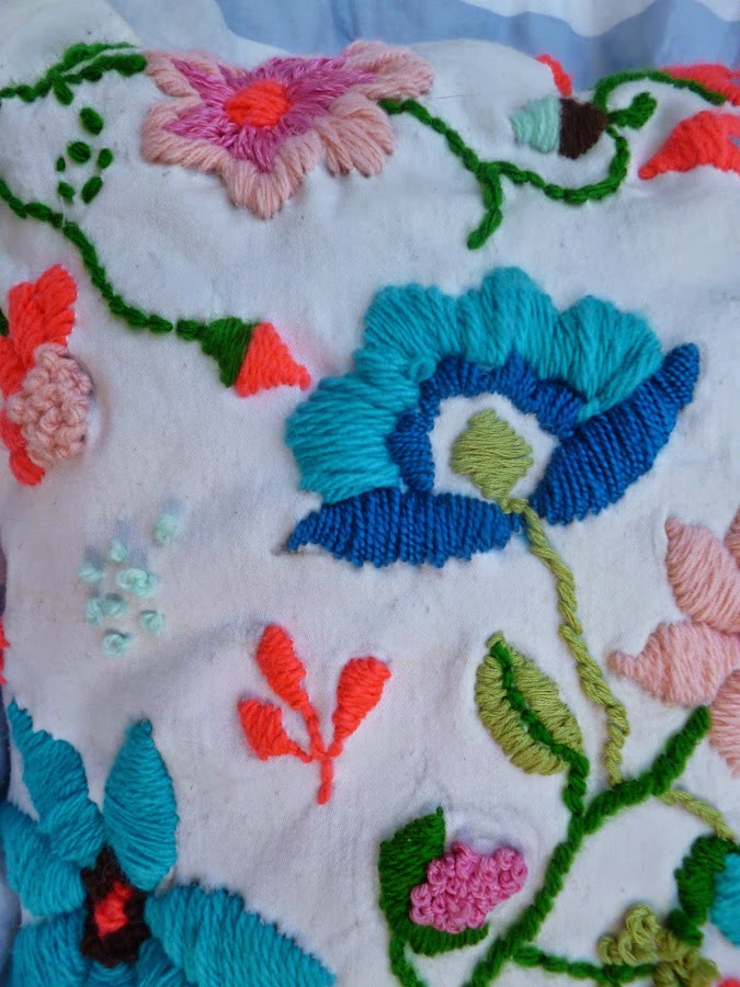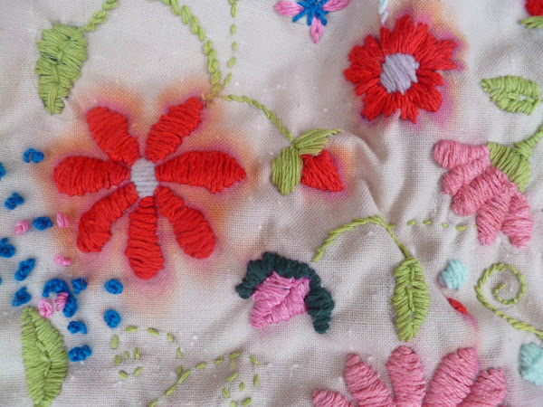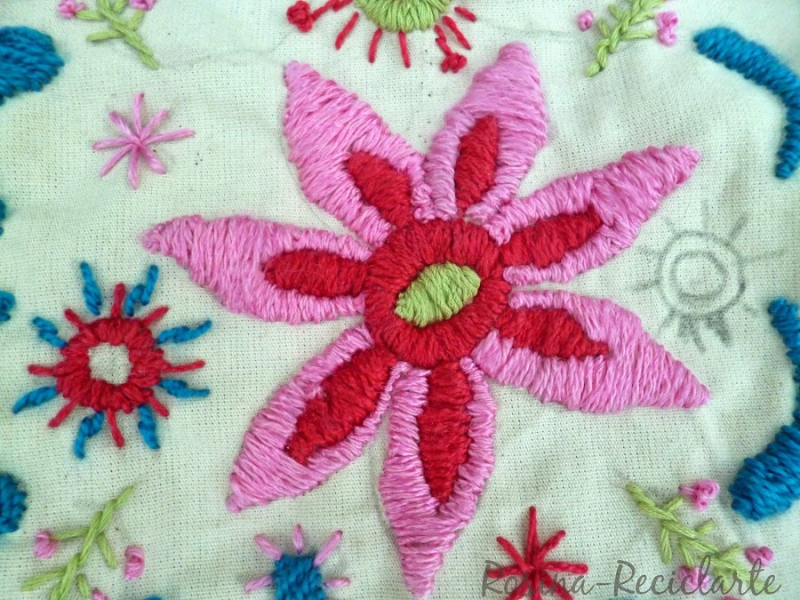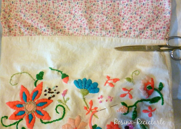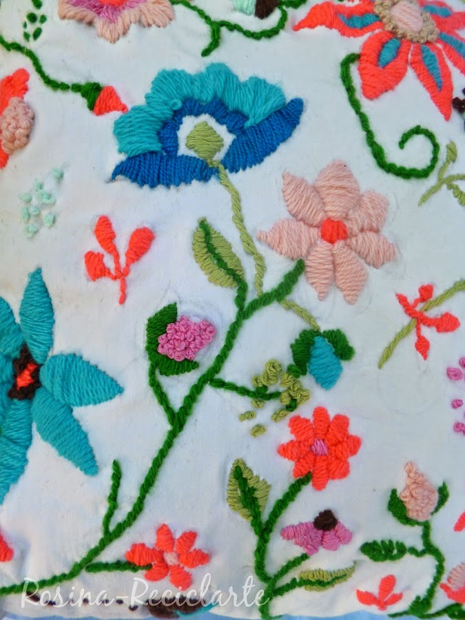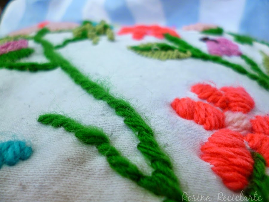 La tela sobre la que bordé es algo así como una gabardina, y es la última de las fundas que mi amiga Carola me había dado para reciclar el año pasado, acá y acá te mostré en que convertí 3 de ellas.