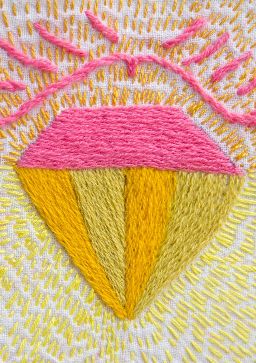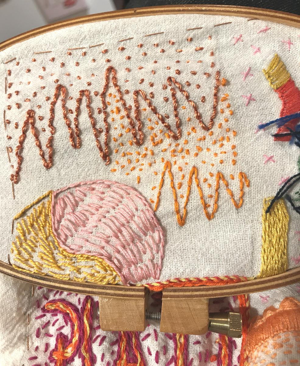 Y si, cuando sabés bordar y te enseñan que eso no importa, que con saber hacer tres puntos es suficiente, que el bordado admite el nudo del hilo por detrás de la labor (algo impensado en el bordado tradicional), que si bordás y no queda perfecto no hace falta deshacer sino que hay que observar y continuar por donde “nos pide” el bordado, son todas pautas que no tenía incorporadas y a medida que bordaba iba experimentando cada una de ellas.