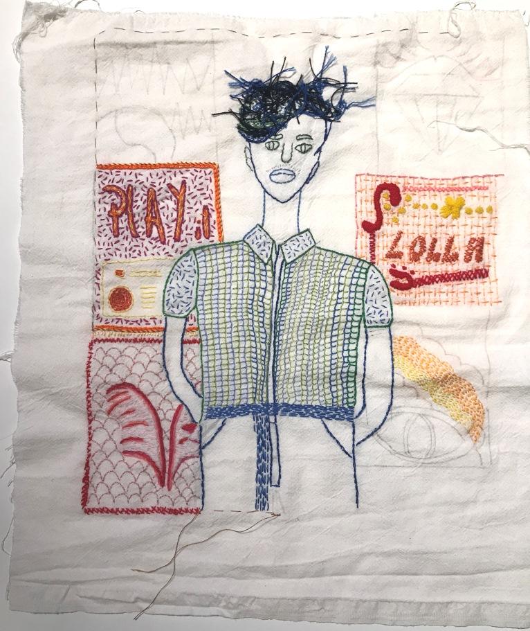 Así fue que de una foto de Guido cuando fue a ver el recital de Lollapalooza es que dibujé a mano alzada su imagen y empecé a bordar.