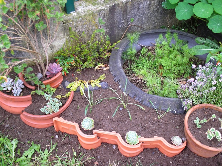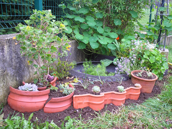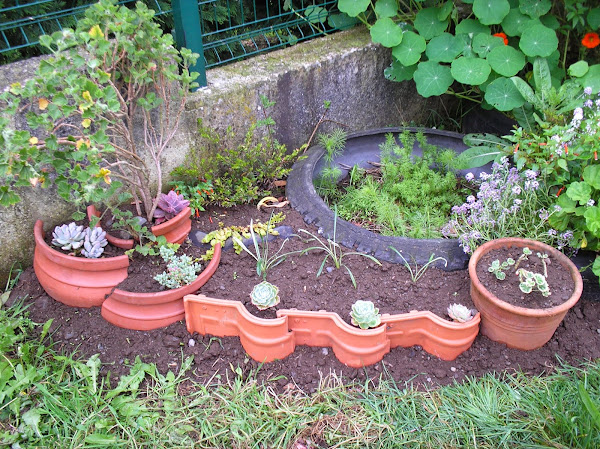 para continuar lo que había comenzado la semana pasada con una maceta rota, las vi tiradas en Santander en una escombrera y no lo pude resistir