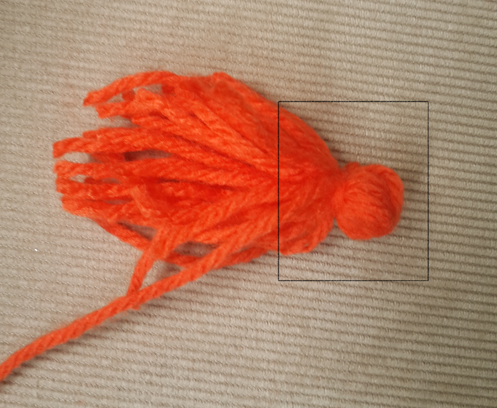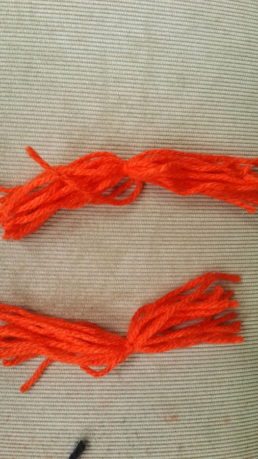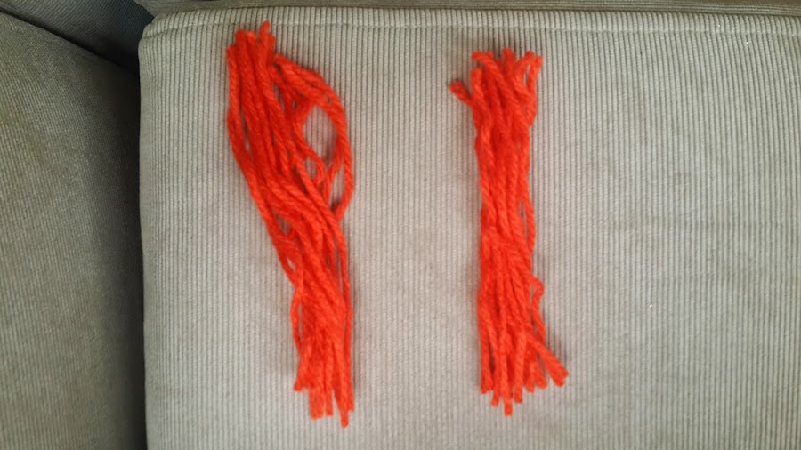 Cortamos la lana de un tamaño que duplique el que quieran darle a la borla (yo corte 30 tiras de lana por cada una)