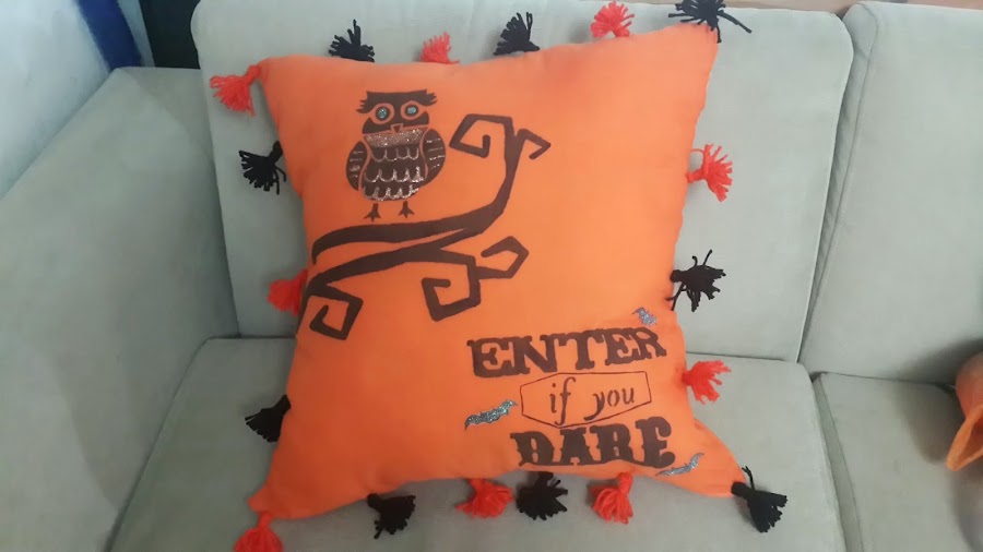 recortamos el excedente de lana, y listo¡¡¡¡¡ a decorar lo que quieras, estas las use para decorar los cojines de halloween