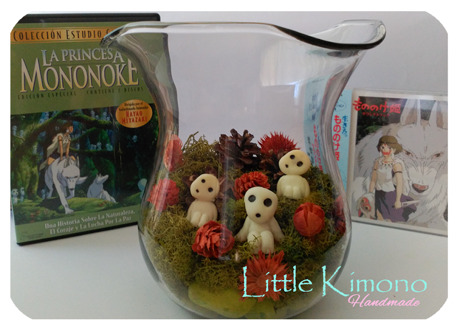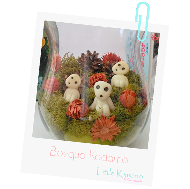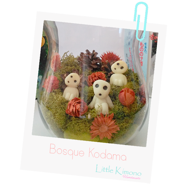 4. Y por último colocamos nuestros personajes y listo! tenemos un Terrario super molón para decorar este Otoño jeje además mis Kodamas brillan en la oscuridad ◠‿◠