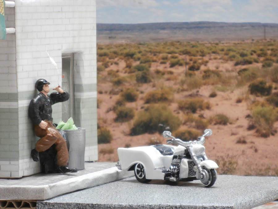 Otra motito Hotwheels, me gustaba el modelo, pero no estaba del todo bien logrado. Asi que la desarme por completo y lo modifique. Con clips y cables le construi la horquilla, luces y el porta equip ...