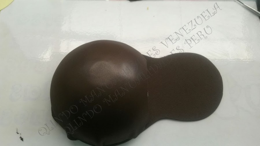 3. Dividir una bola de tecnopor nro.4 en dos, y cortar un pedazo de microporoso un poco mas grande que la bola de tecnopor.