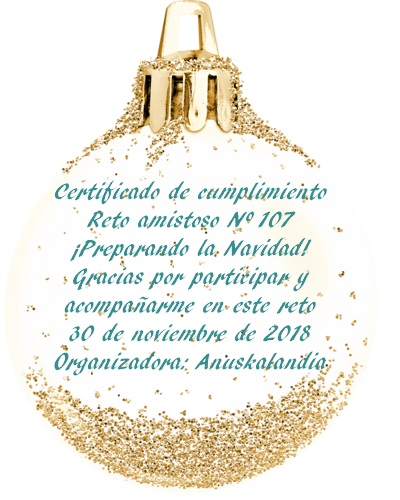 Y vengo acompañando a mi maestra Ana,de Anuskalandia,torbellino donde los haya,jajaja,gran amiga como todas sabéis y artesana de aúpa! como anfitriona del Reto Amistoso 107,Preparando la Navidad.