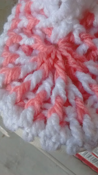 Detalle de la parte del frente tejido en puntada de resorte sencillo, haciendo las disminuciones necesarias.