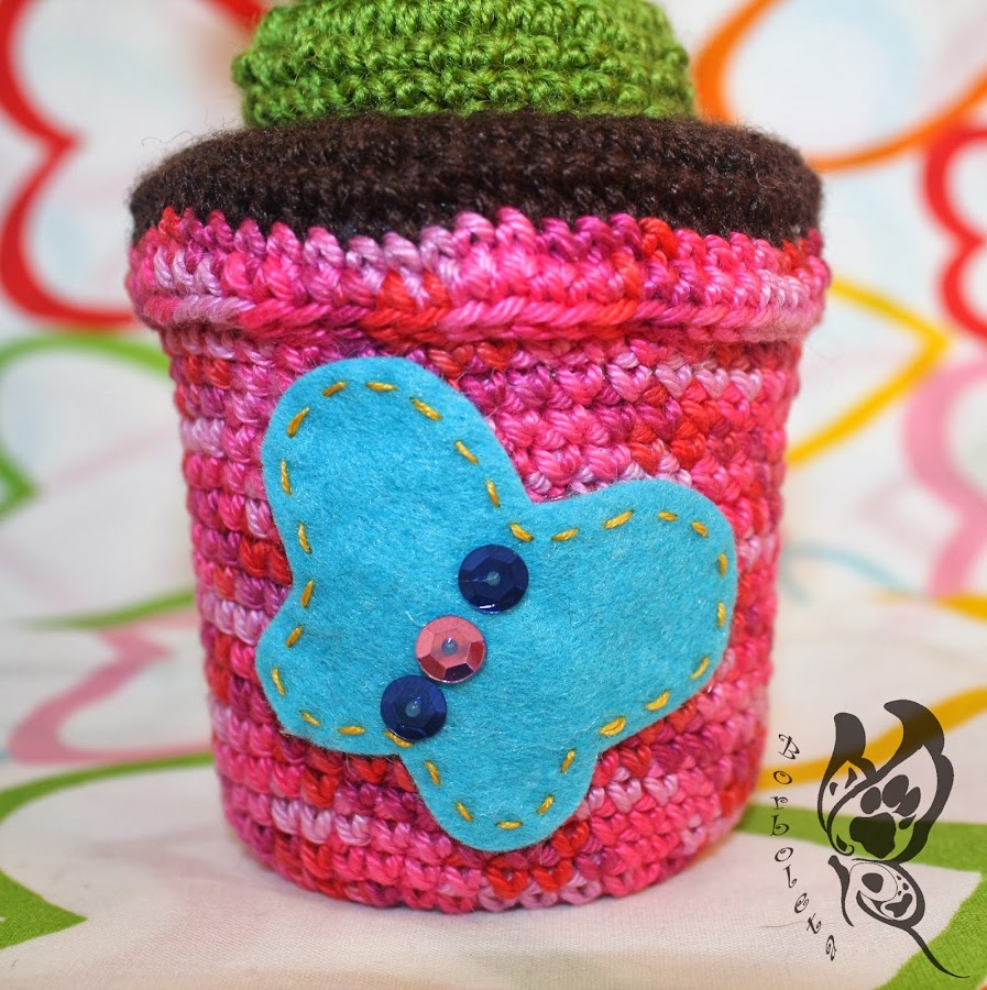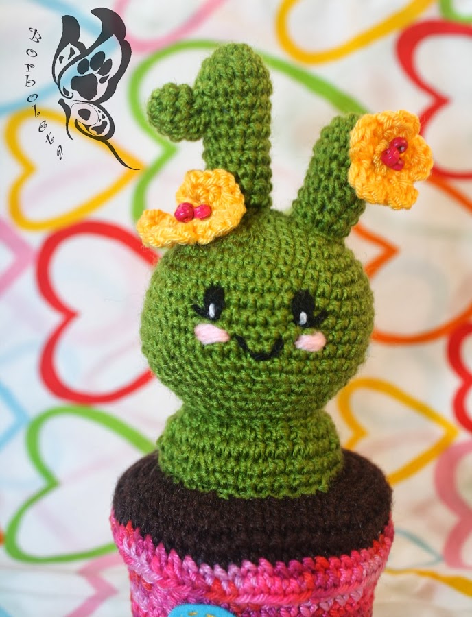 Había visto una chica que hacia cactus en tela de diferentes estampados y se me ocurrió hacerlo en amigurumi y vi algunos por Internet, que estaban en su maceta y todo. Pero yo quería algo más especial como os he dicho y ¡¡tachan!! Se me encendió la bombilla, ¡¡Un bote!!