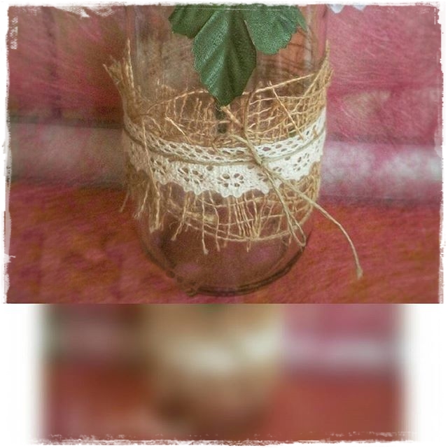 Cuando mi hermana me dijo: "Quiero que me hagas con este bote de cristal un jarrón, muy sencillo, no pintes el bote, no pongas dibujos ni flores, algo simple pero bonito". Pensé..pero¿que le hago?.