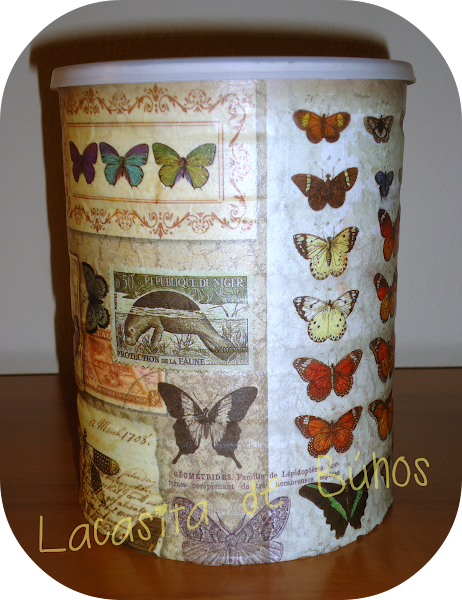 Aquí se puede apreciar mejor el papel lo bonito que es. Tiene muchos detalles. Este tipo de botes se puede usar para muchas cosas: guardar juguetes pequeños, caramelos, canicas, lego, gomas de pelo, etc. Animaros a hacerlo porque el trabajo invertido (quitando los tiempos de secado) es de unos 15 minutos.