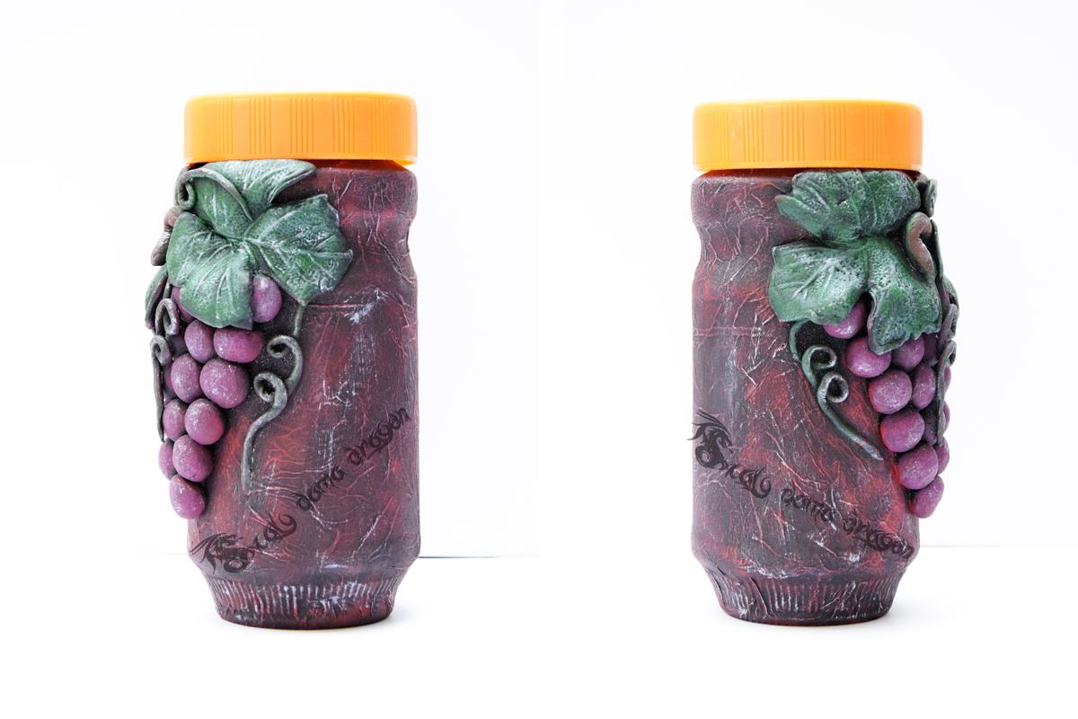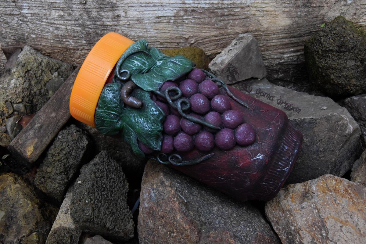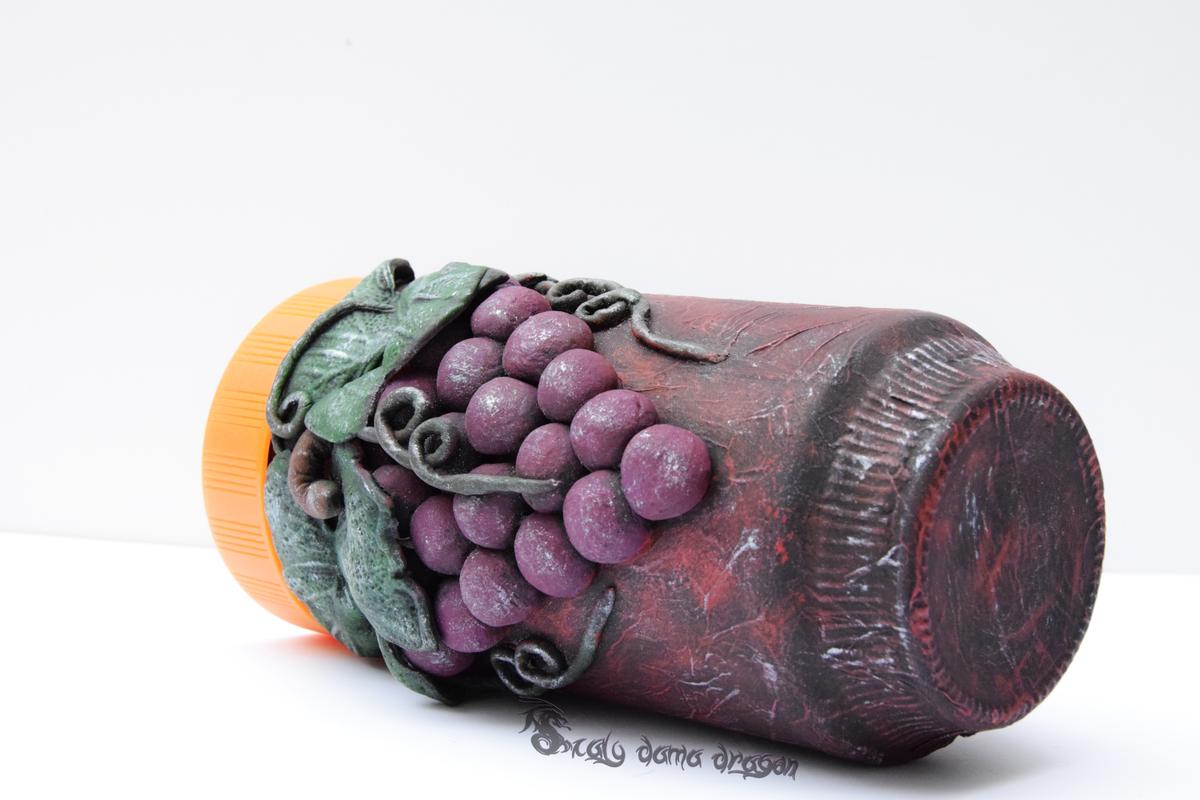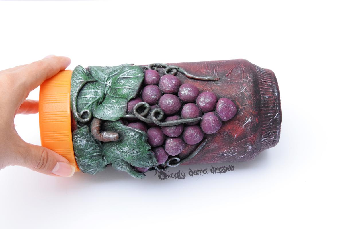 Pega las uvas en la superficie del bote dándole forma de pirámide invertida.