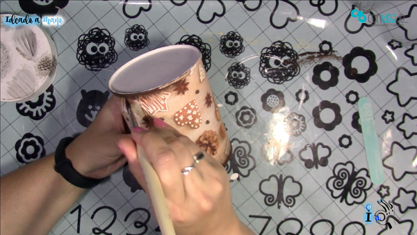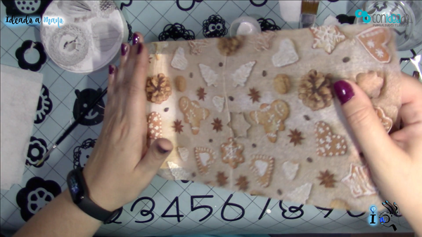 Continuamos haciendo el decoupage todo alrededor del bote, con esta servilleta de galletas navideñas tan chula y que tan bien queda para el propósito de nuestra manualidad.
